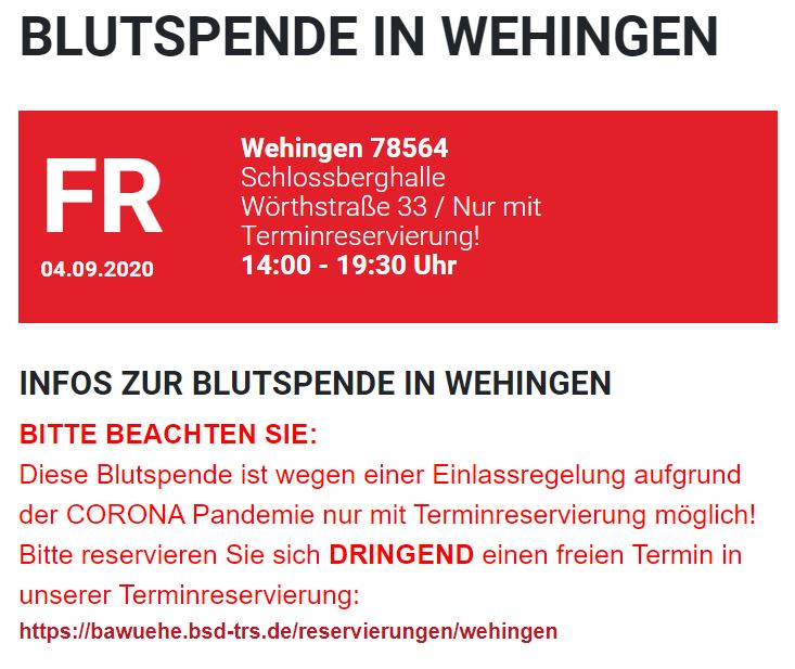 Blutspendetermin am 04.09.2020 findet statt
